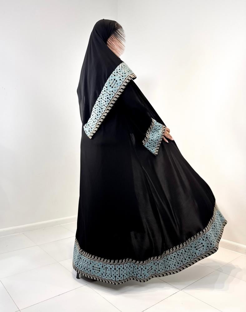 - تتميز العباية بتفاصيل مميزة تضيف لمسة فريدة من الجمال إلى التصميم. قد تتضمن زخارف مطرزةمع الاكمام والاسفل الذوق والفخامة.